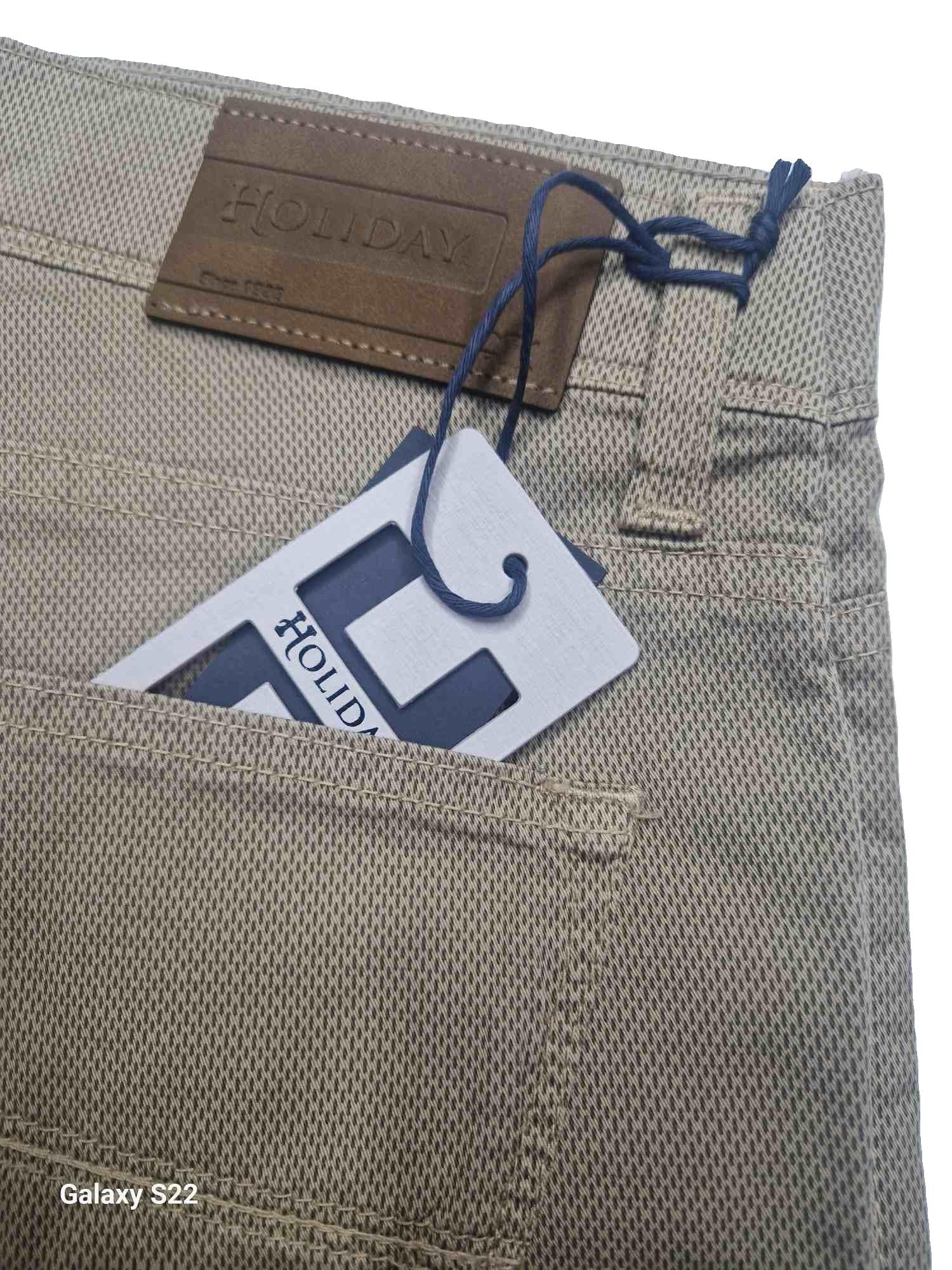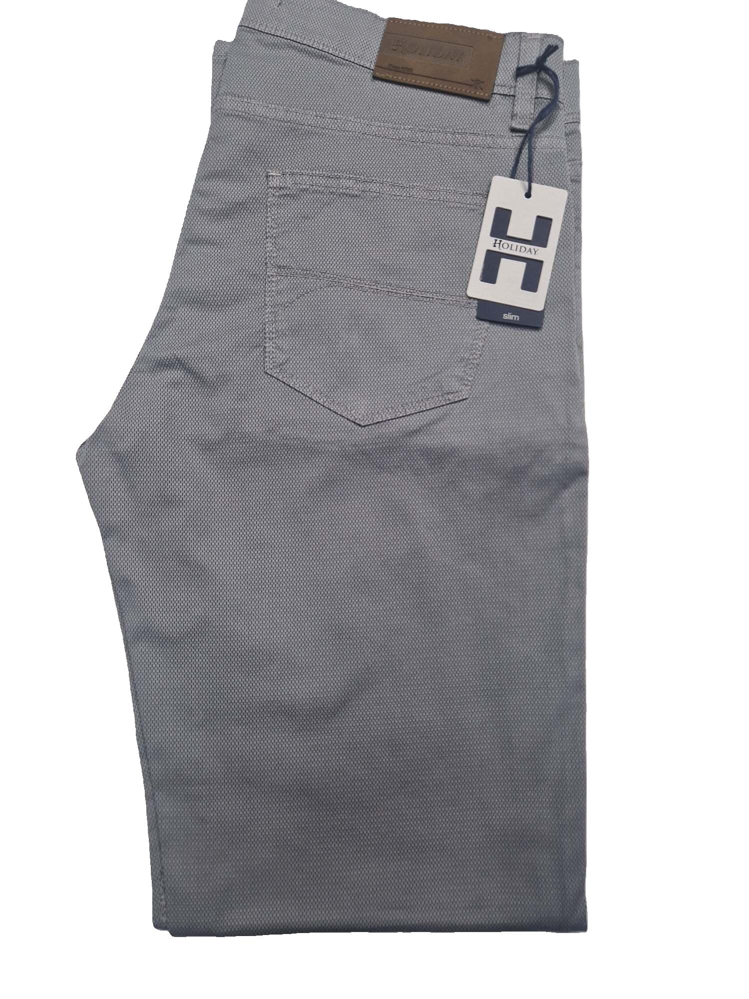Pantalone uomo modello 5 Tasche dalla vestibilità Slim con gamba asciutta ma con vita alta. Composizione 97% cotone 3% elastan. Tessuto lavorato con micro-fantasia adatto per stagione Primavera Estate..