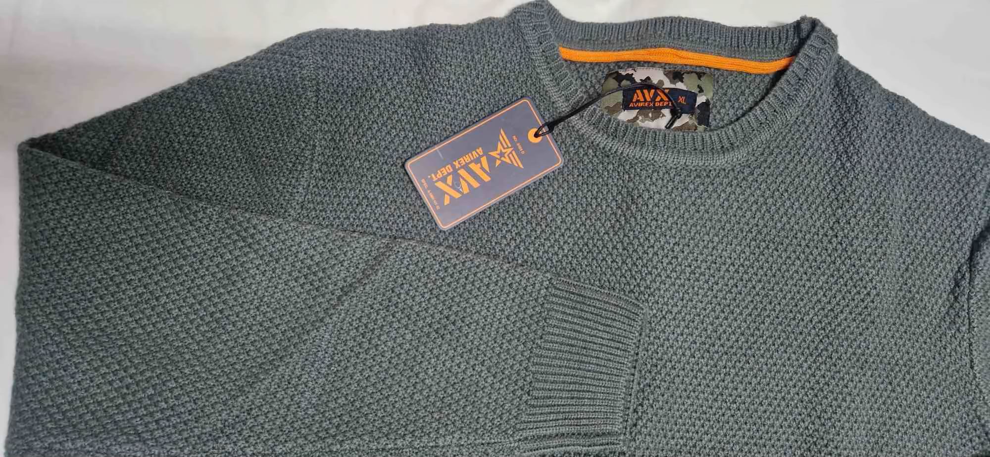 Maglioncino AVIREX con scollatura giro gola . Presenta una bellissima lavorazione del filato a Nido d’ape . Questa è presente su tutti i lati della maglia e delle maniche.. molto giovanile come modello e di tendenza .Adatto per chi cerca un maglioncino caldo per contrastare il freddo inverno ma senza perdere lo stile e la contemporaneità. Composizione filato 100% fibra acrilica.