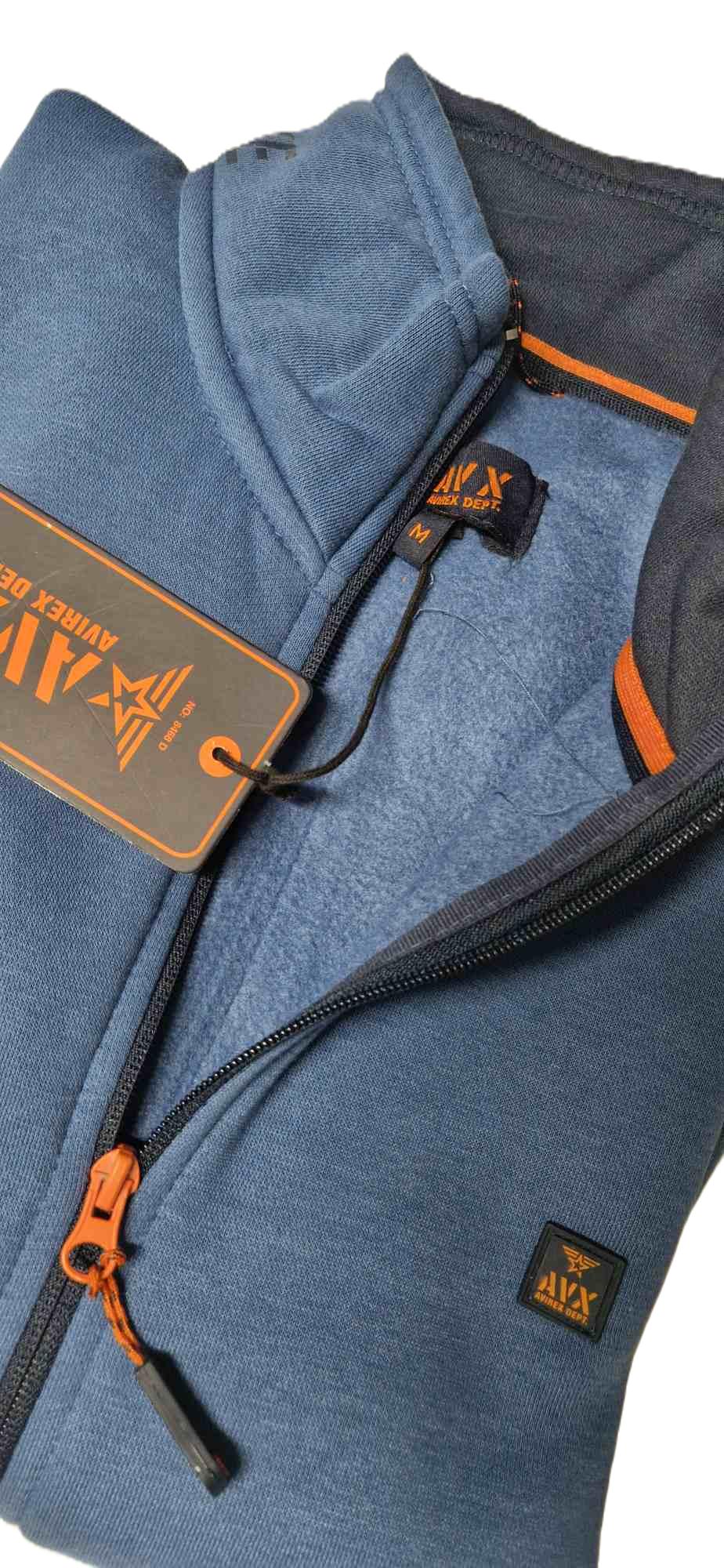 Un’ altro classico di Avirex è la giacca in felpa con cerniera. Realizzata in morbida felpa di cotone in tinta unita, presenta un’apertura con cerniera, collo alto, due tasche laterali a scomparsa ed elastico in vita e polsini. Particolare è la stampa applicata dietro il colletto e il logo Avirex applicato sul petto lato cuore. Articolo sportivo ma molto usato per stare caldi in inverno e soprattutto come capo originale da indossare. Composizione 50% cotone 50% poliestere.