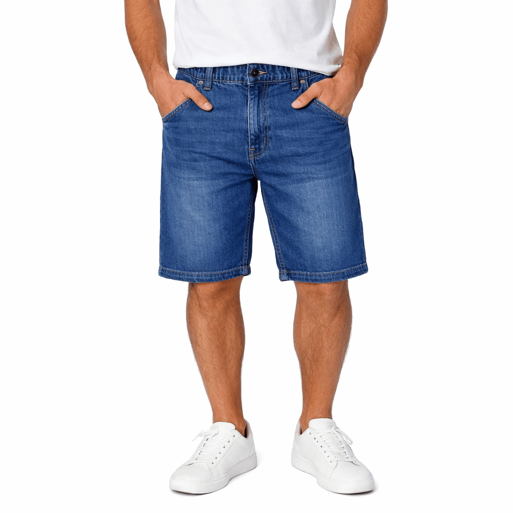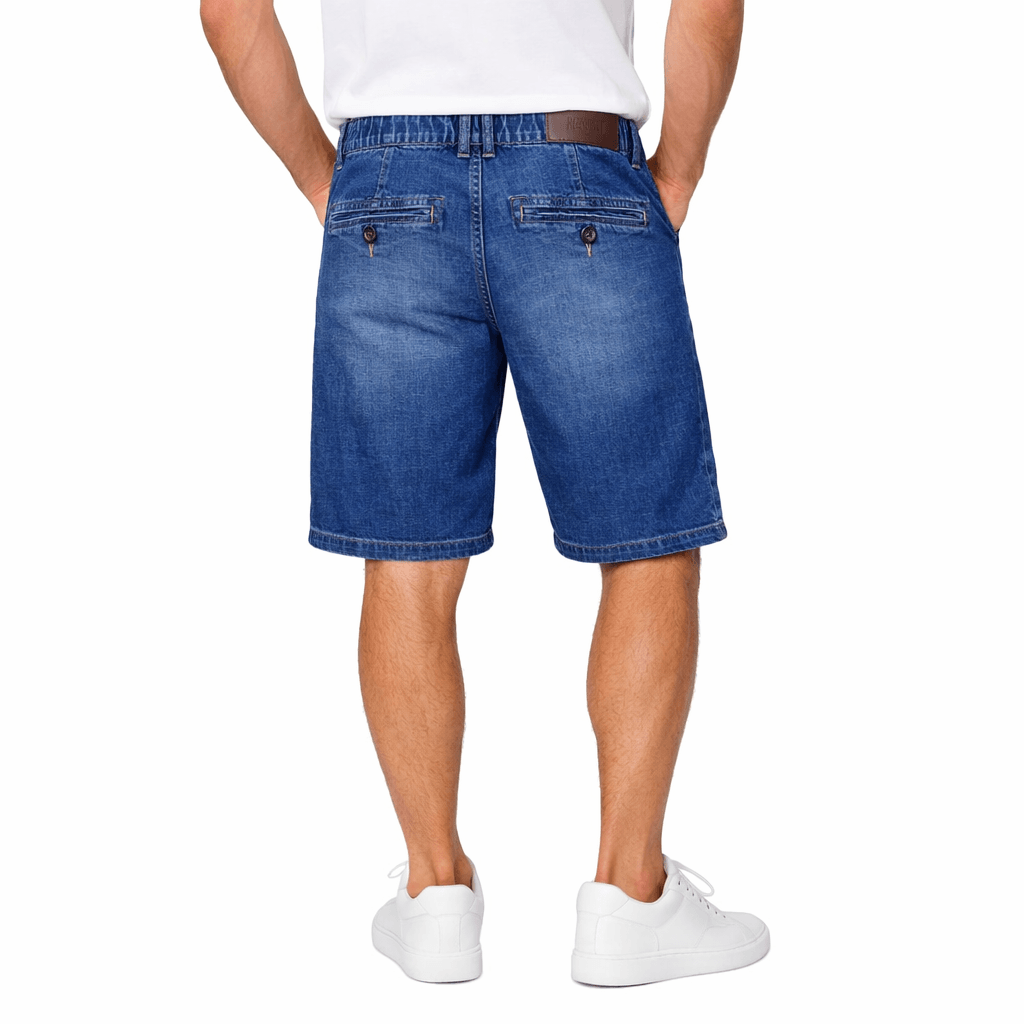 Shorts in denim blu con vita elasticizzata, passanti per cintura e chiusura con bottone. Dotati di tasche frontali e tasche posteriori con bottone, offrono comfort e praticità per l’uso quotidiano. Stile casual, perfetti per la stagione estiva.
