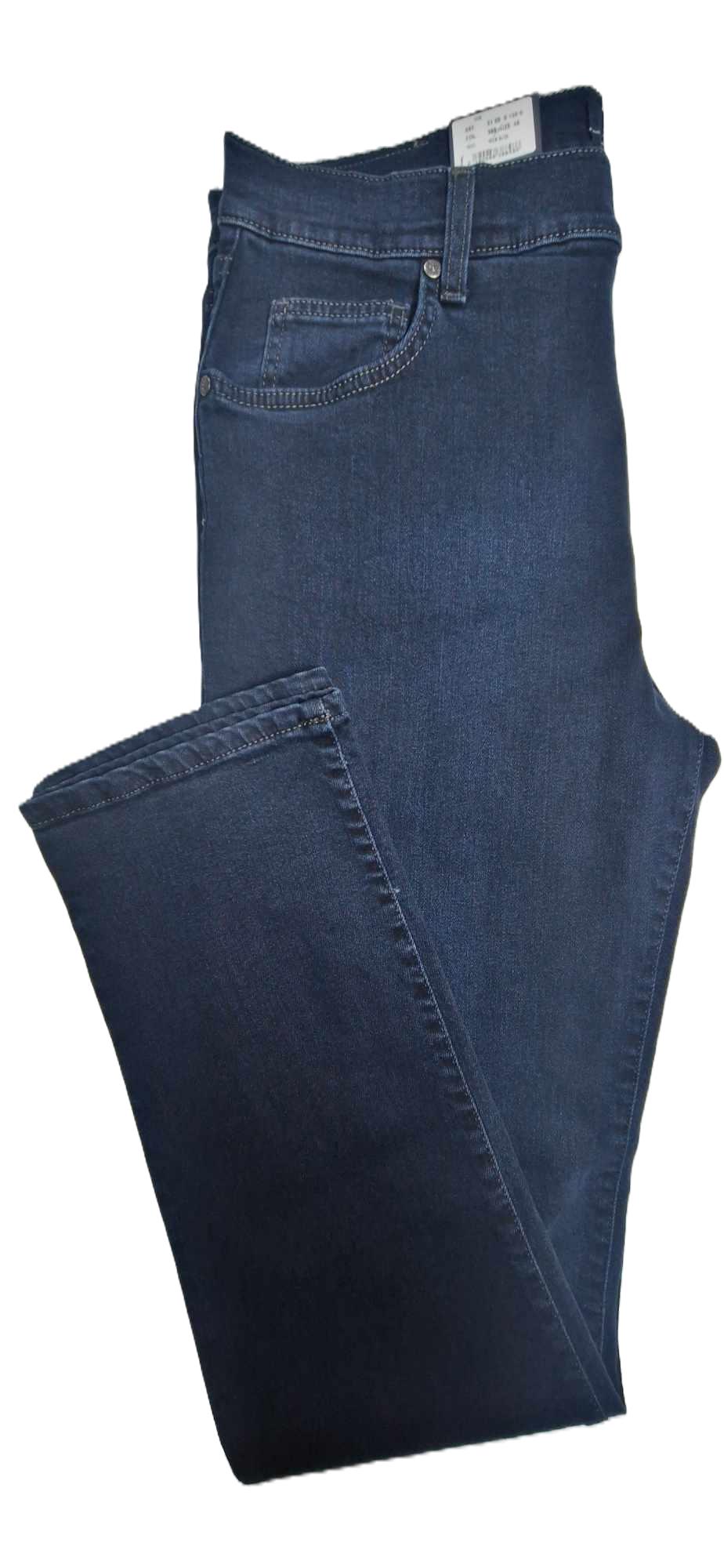 Il comfort della tela denim stretch, realizzata nel particolare lavaggio del blue-black; DIX, REGULAR FIT, vita alta e gamba regular, 10oz.