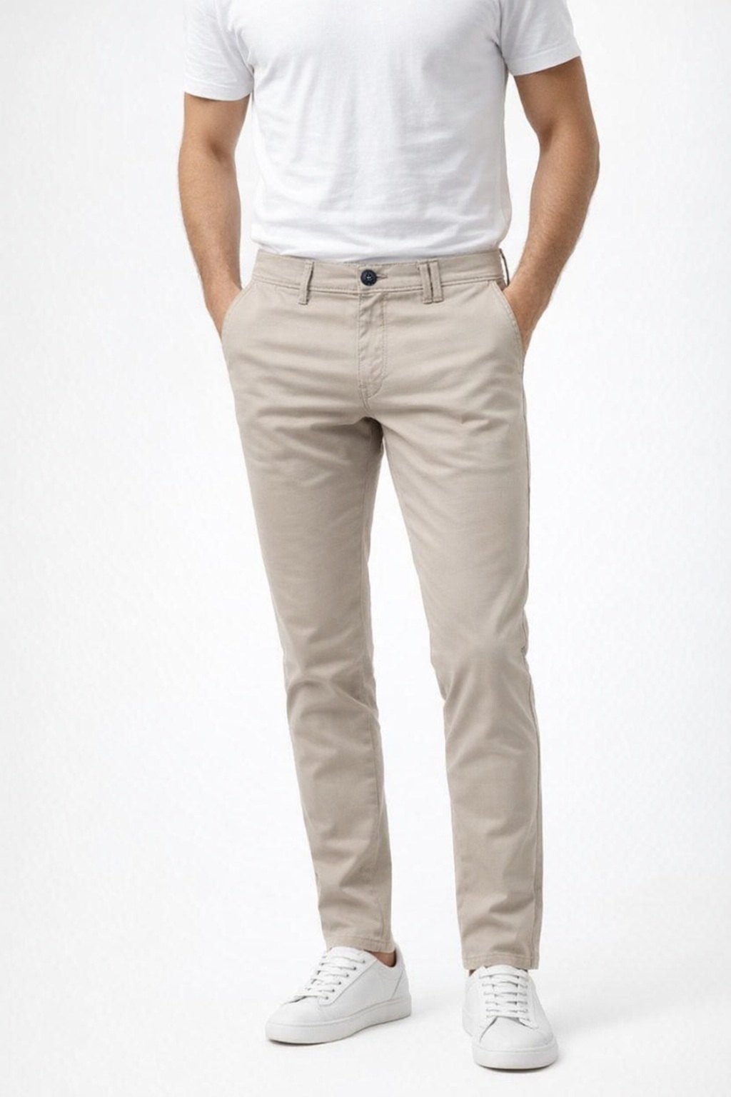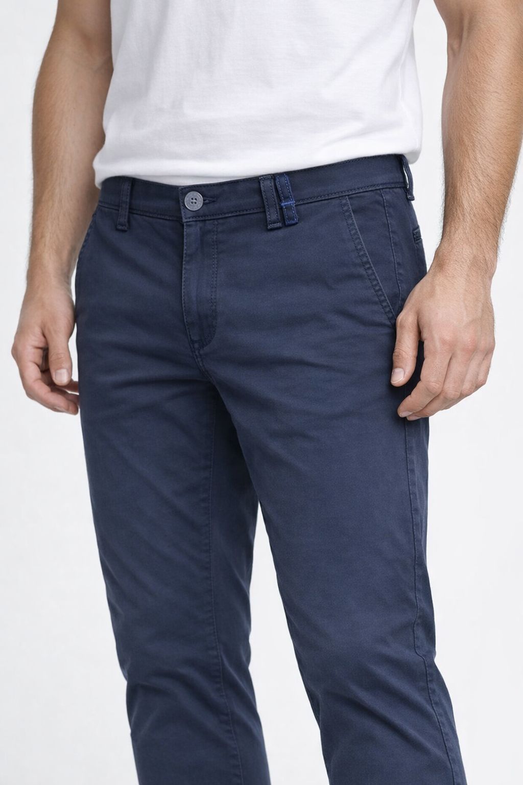 Pantalone Chino dalla linea dritta e pulita. Garantisce una vestibilità lineare e definita. Disponibile in tre colori. Composizione 97% cotone 3% elastan. Stagione Primavera/Estate