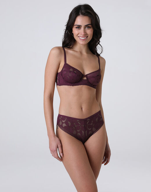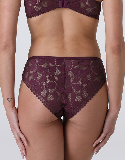 Lo slip in pizzo Art Flower Lace, nella sofisticata tonalità vinaccia, è la scelta ideale per chi desidera un intimo elegante e comodo da indossare ogni giorno. Realizzato interamente in pizzo con motivo floreale grafico, avvolge le forme con leggerezza e sensualità, seguendo le linee del corpo grazie alle cuciture centrali sul fronte e sul retro.