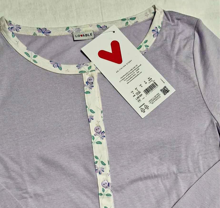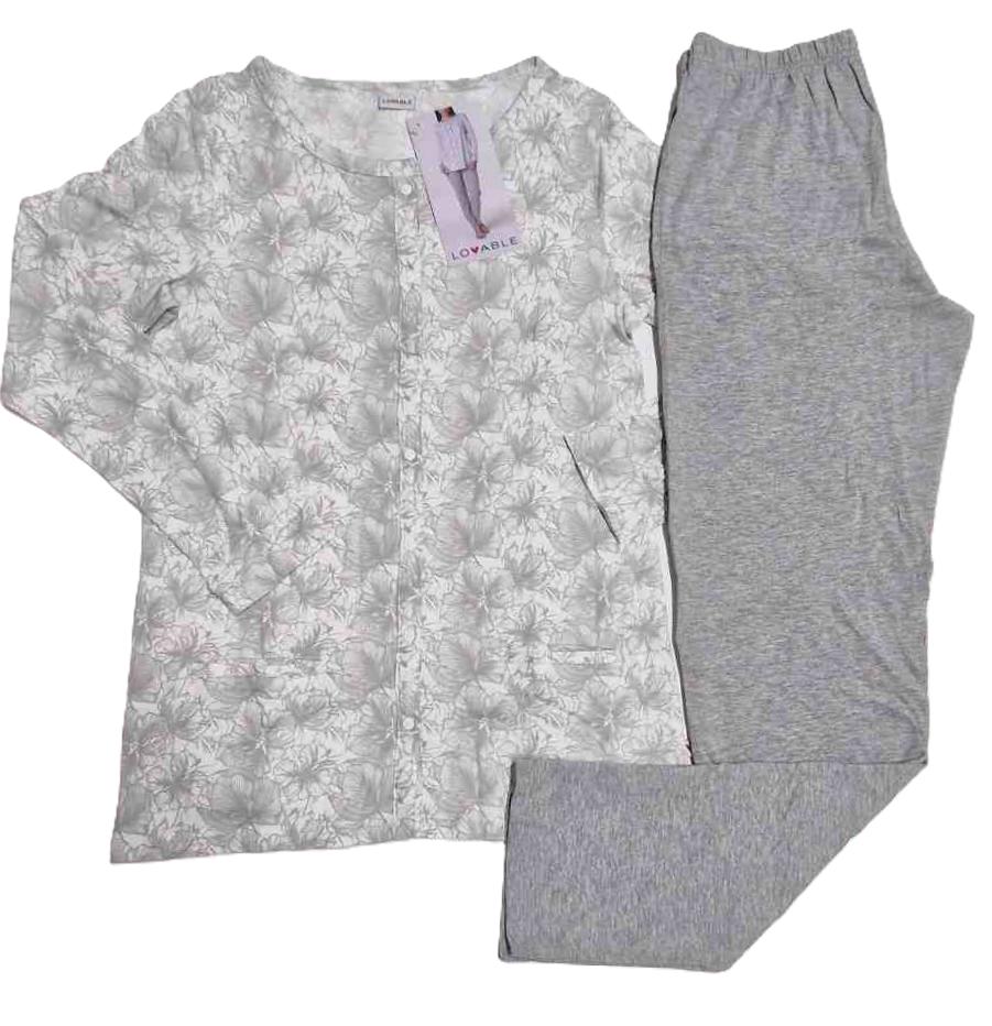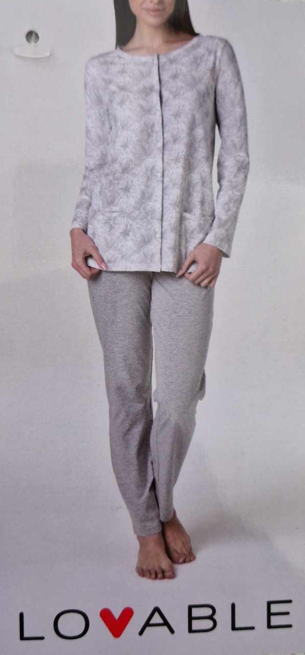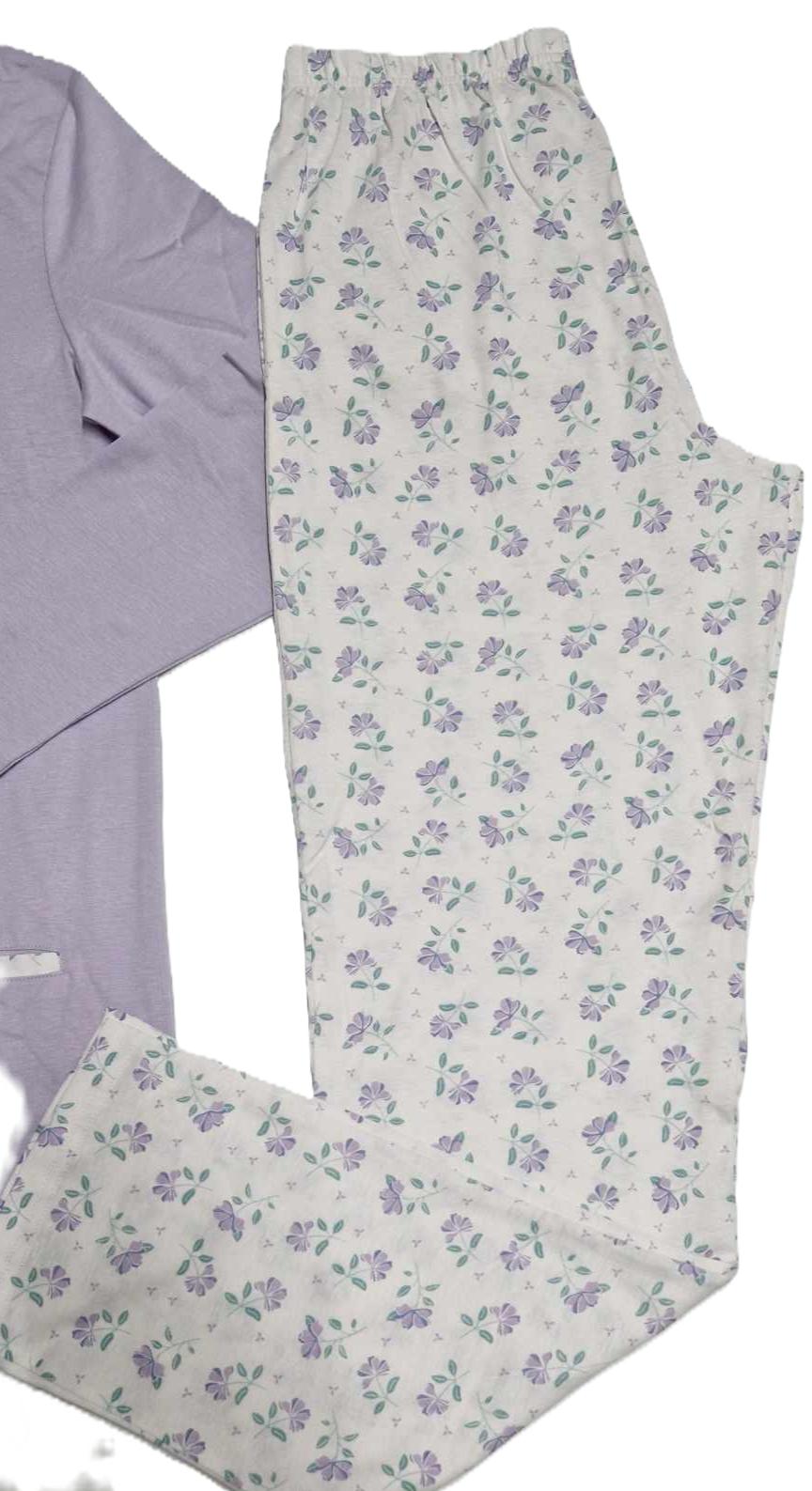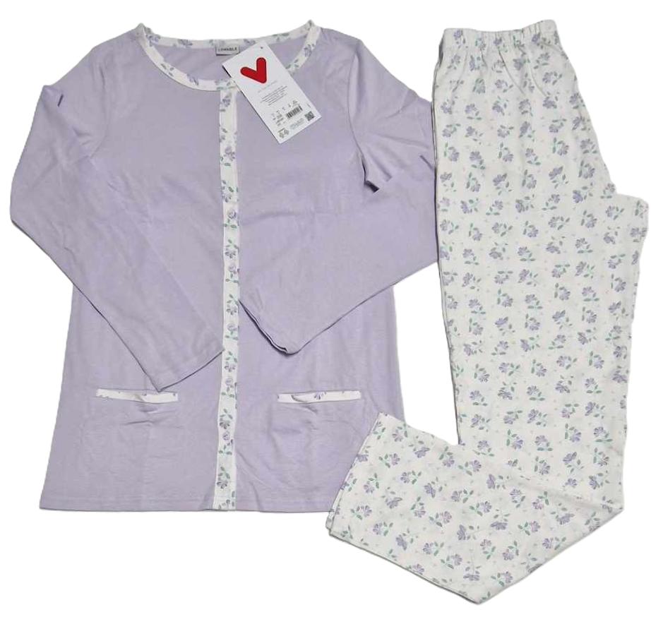 Molto eleganti queste due varianti di pigiama realizzati con la parte superiore aperta a giacca con bottoncini abbinati e pantaloni a gamba dritta senza polsini alle caviglie. Colori sul Lilla e sul Grigio che risultano molto delicati e tenui. Composizione materiali 100 cotone, fine fresco e di ottima qualità.