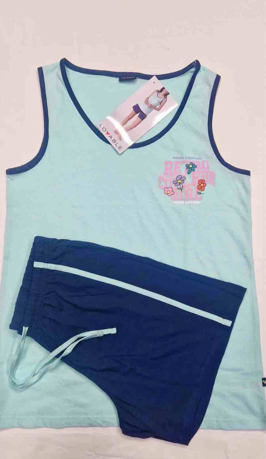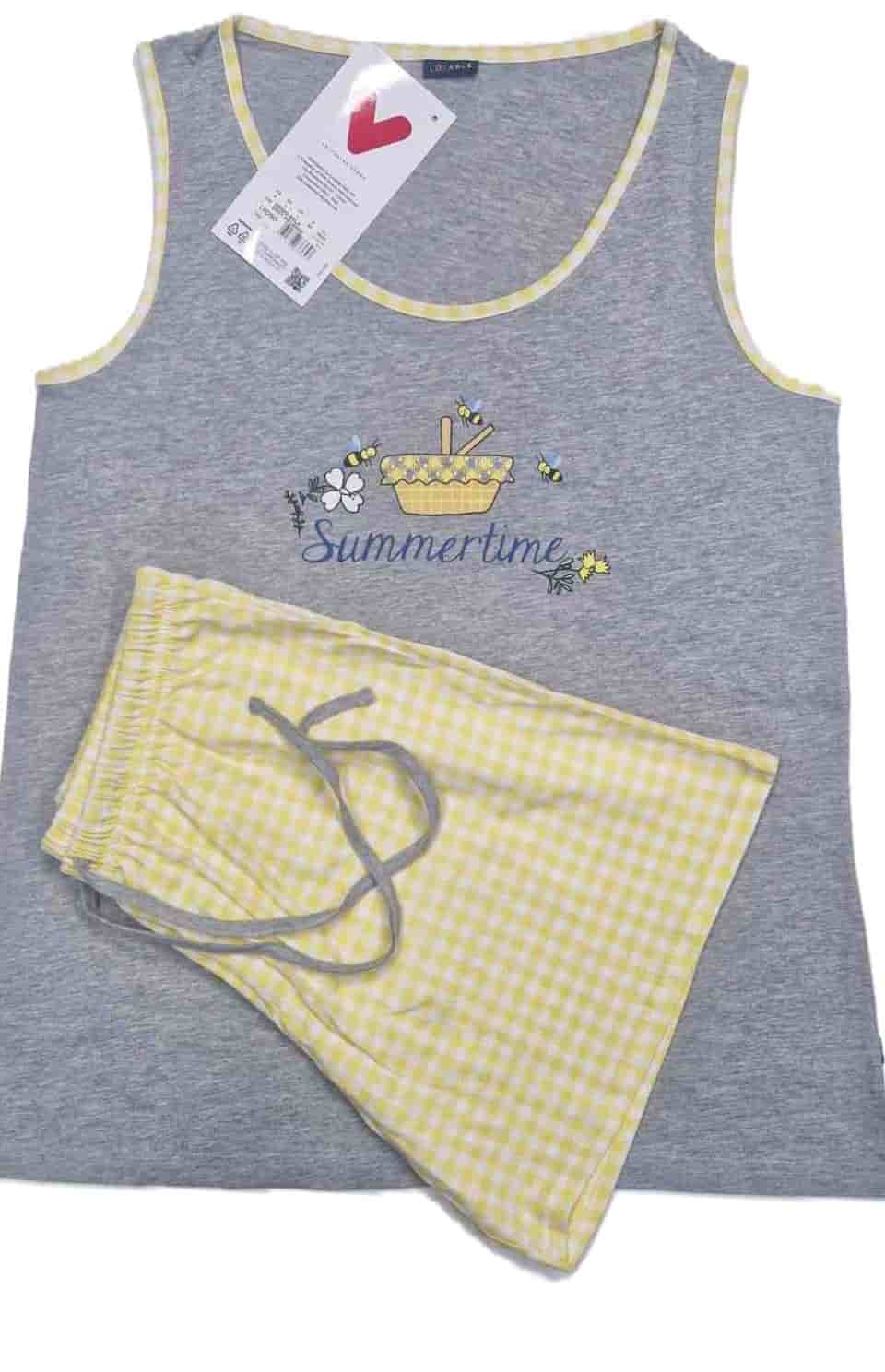 Pigiama Lovable, completo con maglia a canotta e pantaloncino corto , colori nuovi e freschi come il cotone con cui sono stati realizzati. Ottima qualità e rifiniture al top. Composizione 100% cotone.