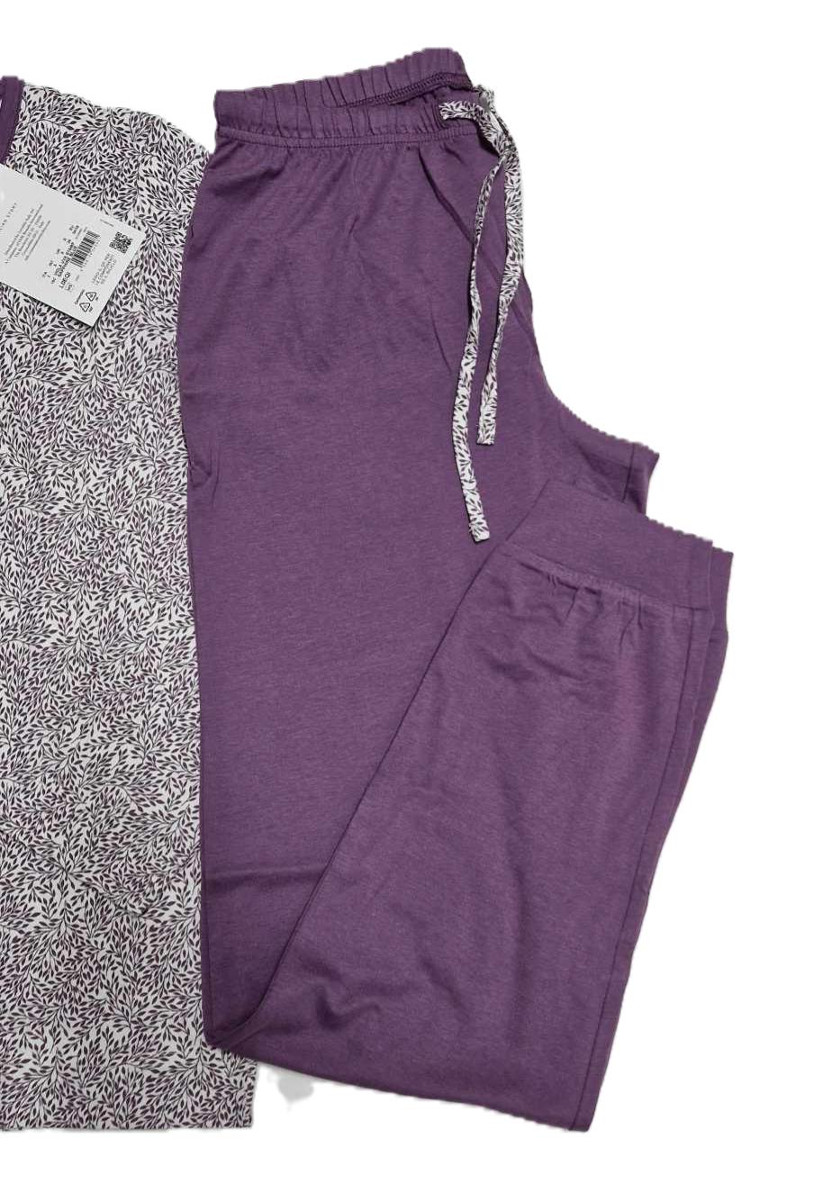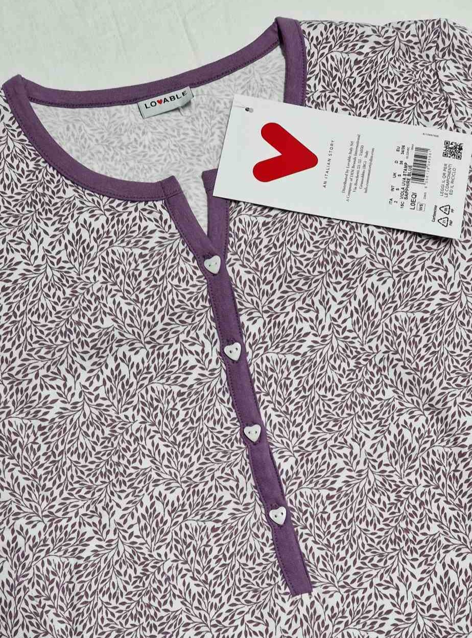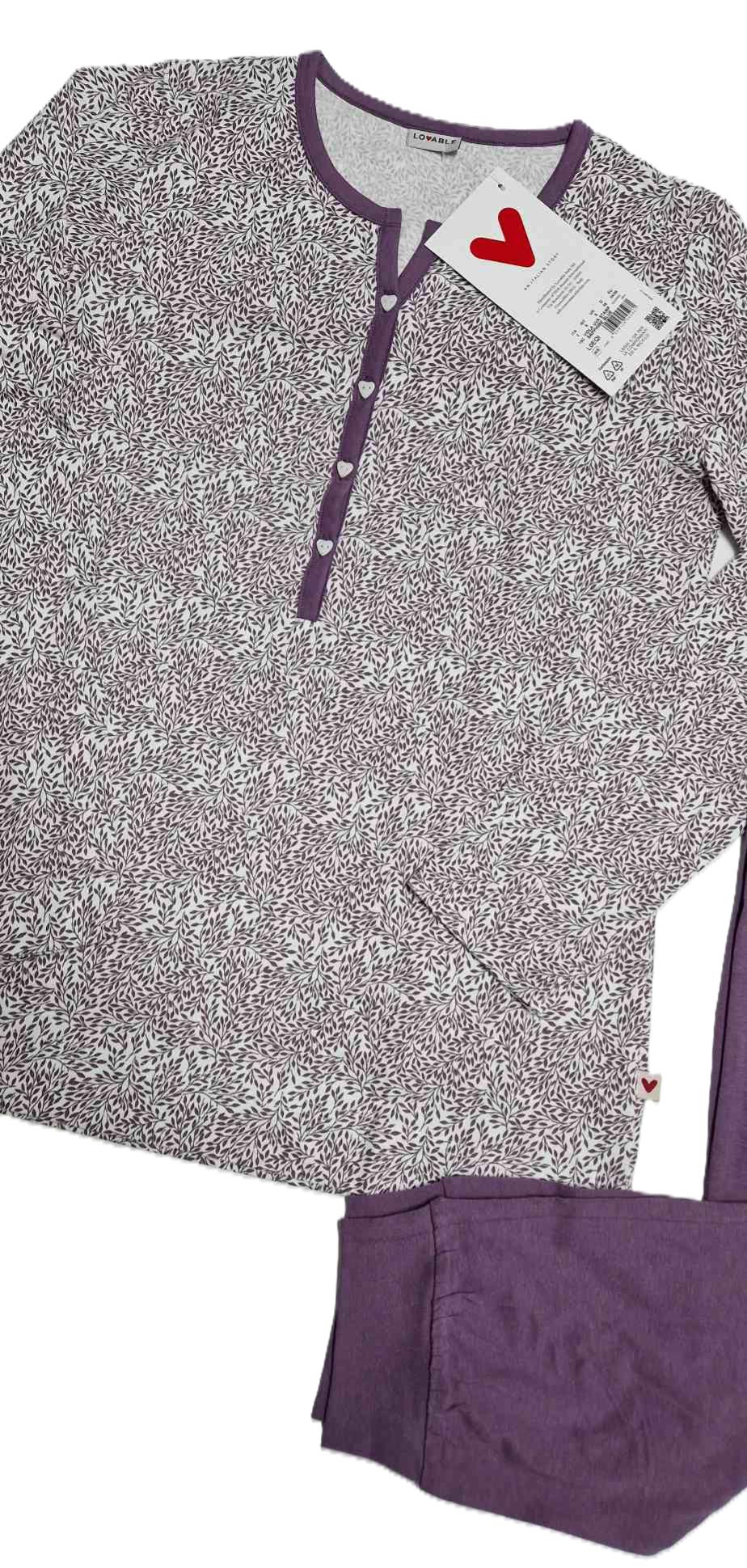 Due bellissime varianti di pigiama da donna di Lovable dai colori decisi e dinamici. La maglia ha una scollatura a serafino con quattro bottoni a forma di cuoricini, il pantalone è realizzato con polsini alle caviglie e coulisse in vita. La composizione è 100% cotone di ottima qualità, al tatto si presenta molto fine e fresco.