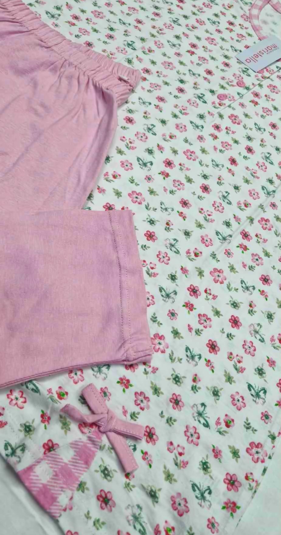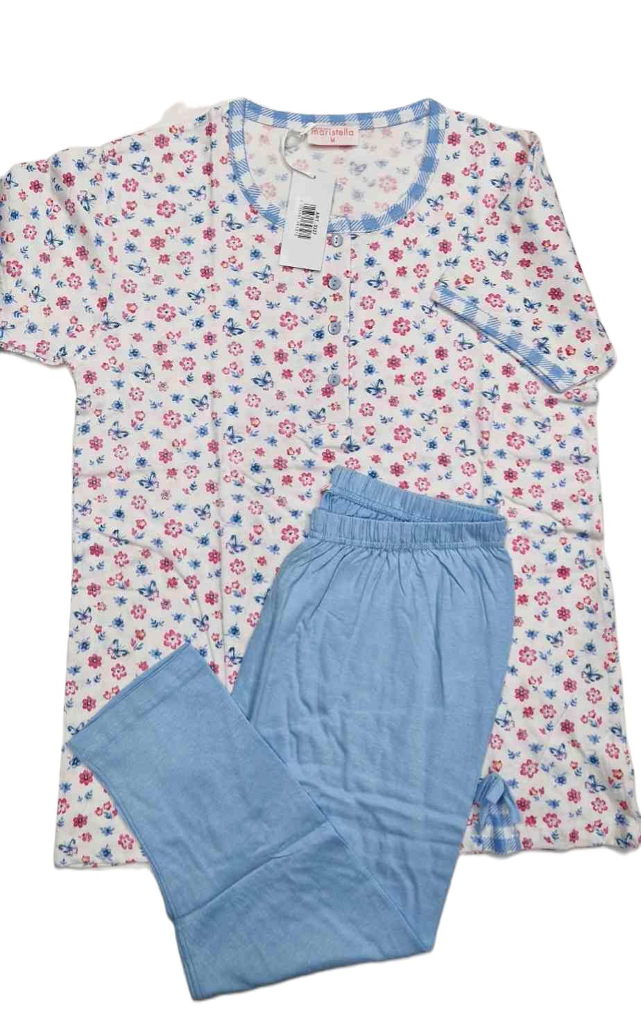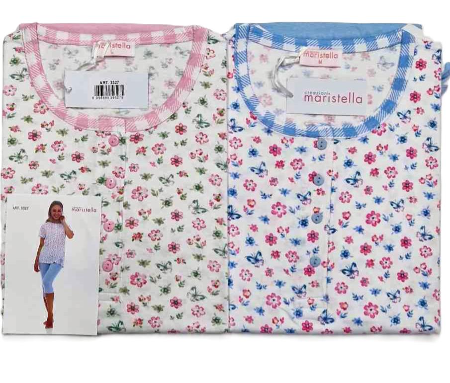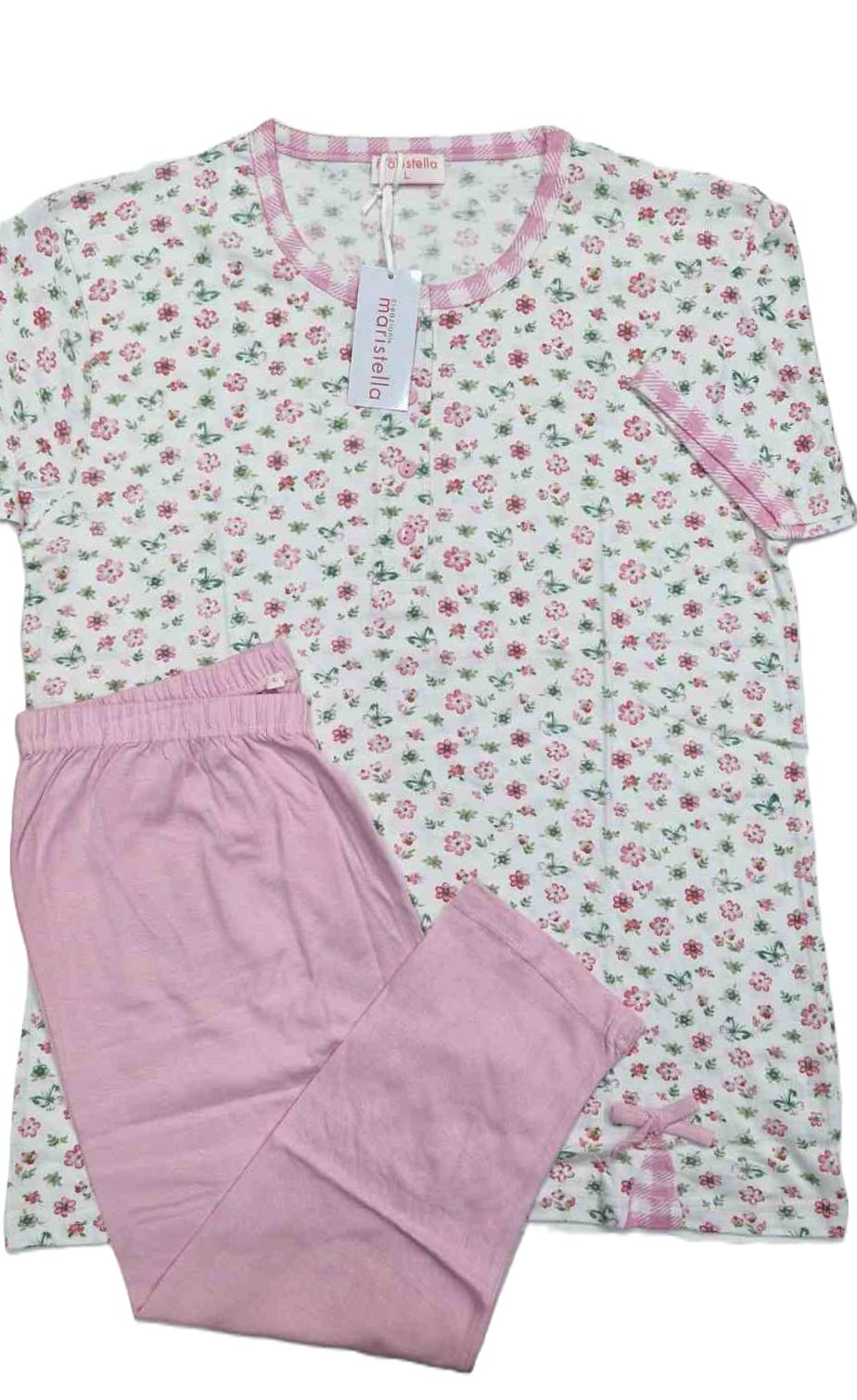 Pigiama donna manica corta e pinocchietto in puro cotone 100% di ottima qualità e finezza. infatti al tatto il tessuto risulta molto fine e di qualità, molto fresco d’estate e resistenza ai lavaggi. Ideale per chi è alla ricerca di un pigiama con parte bassa un po più lunga rispetto al pantaloncino. Ottimo rapporto qualità/prezzo.