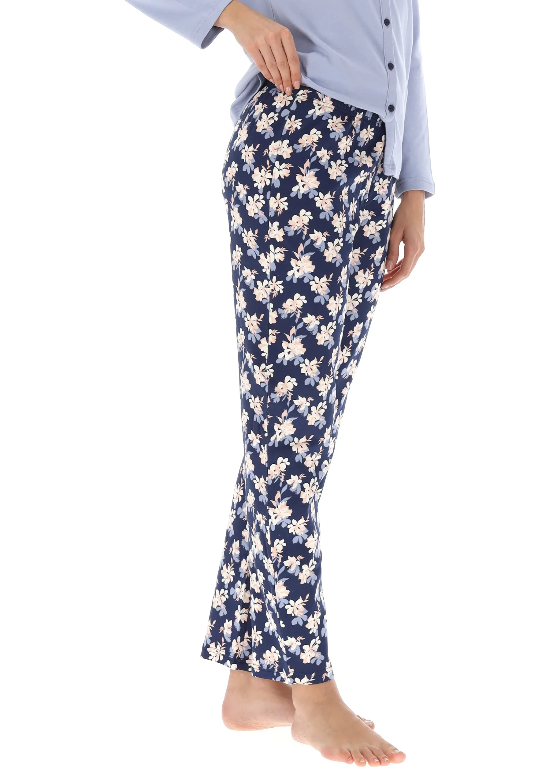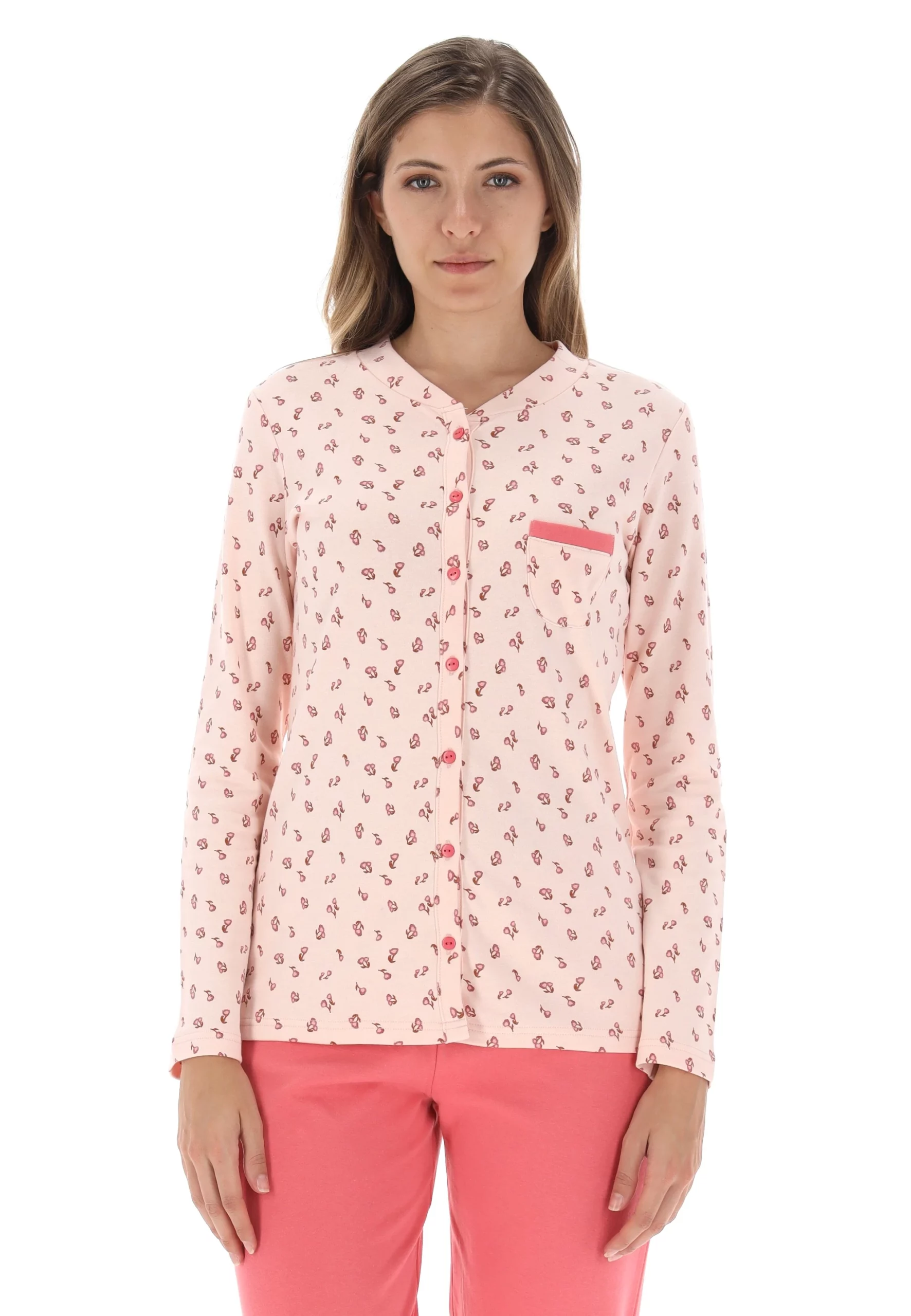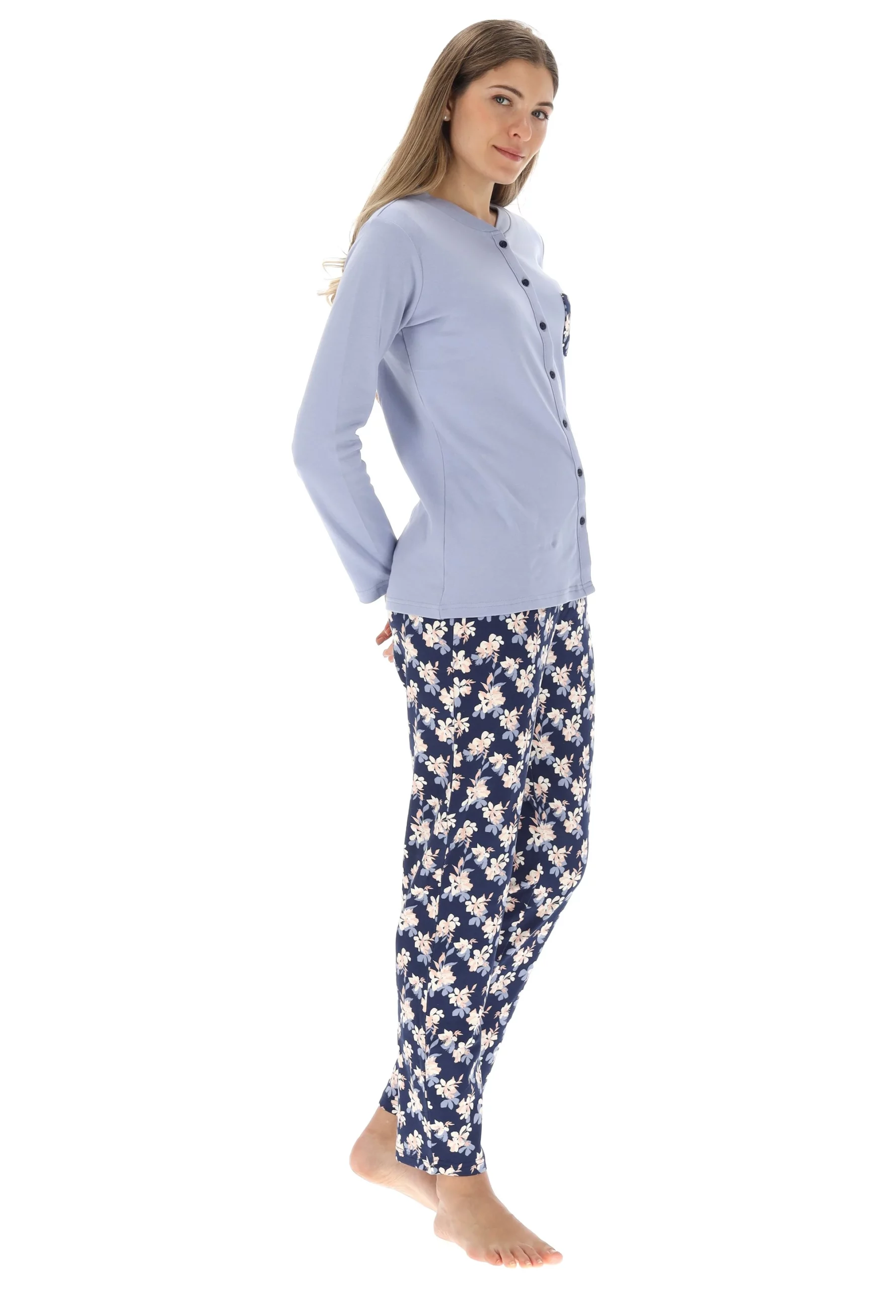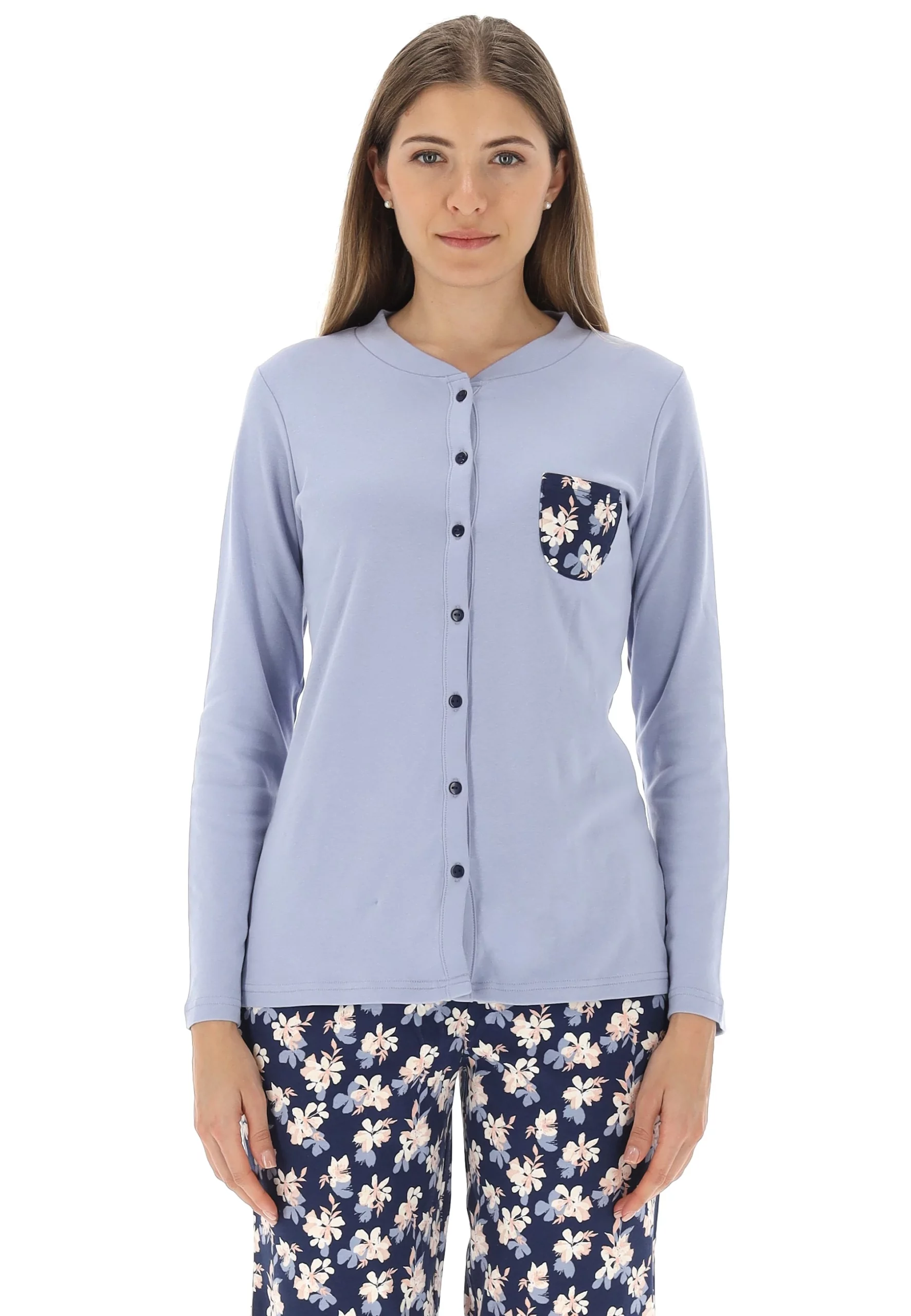 Lovable presenta questo modello di pigiama da donna in due varianti come da foto realizzati con la maglia aperta a giacca con scollatura a giro gola e con bottoncini abbinati. Il pantalone è stato realizzato con gamba dritta e senza polsini sulle caviglie garantendo una vestibilità comoda. Realizzato in caldo cotone 100% con ottime rifiniture e resistente a moltissimi lavaggi in lavatrice.