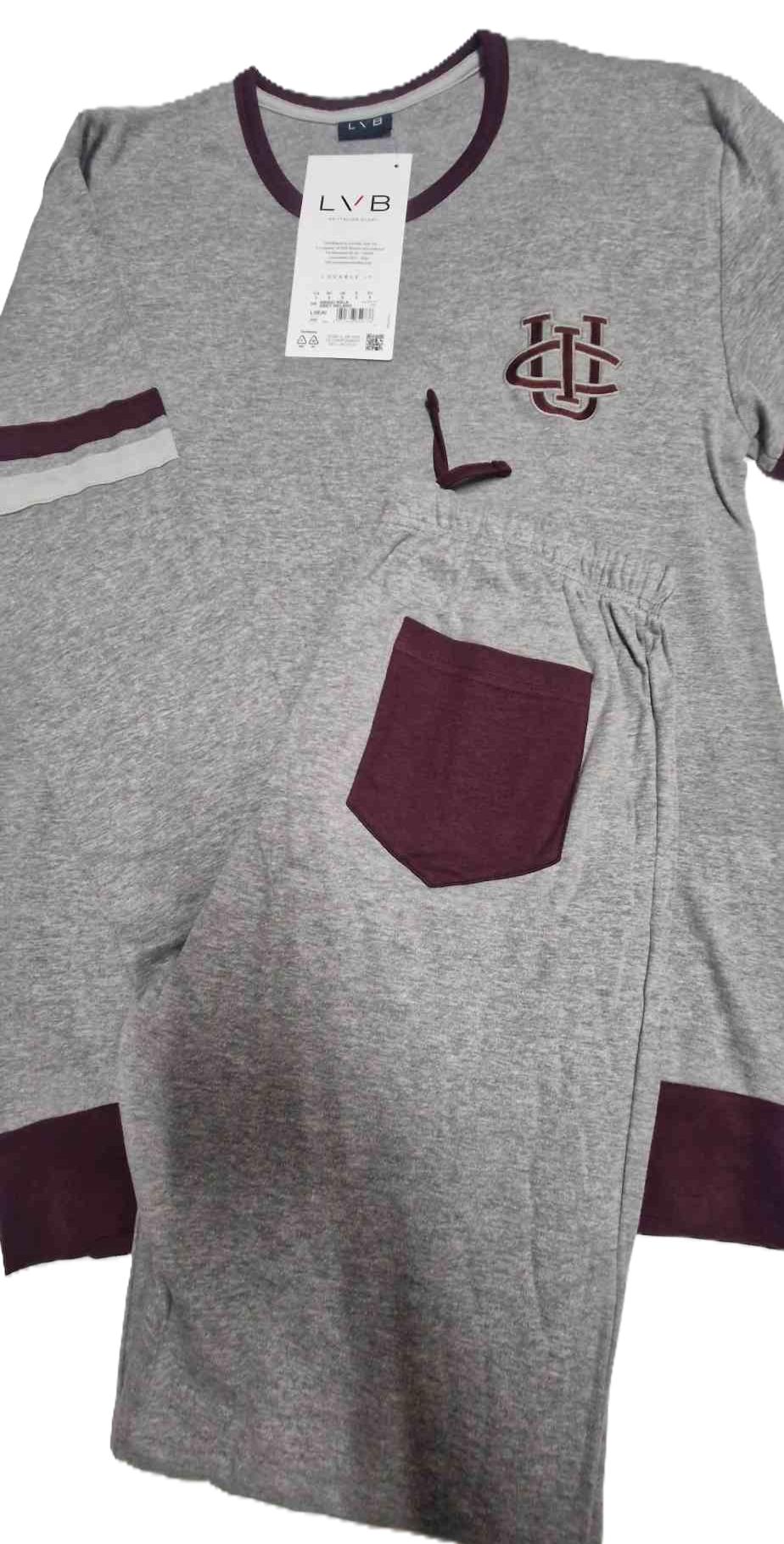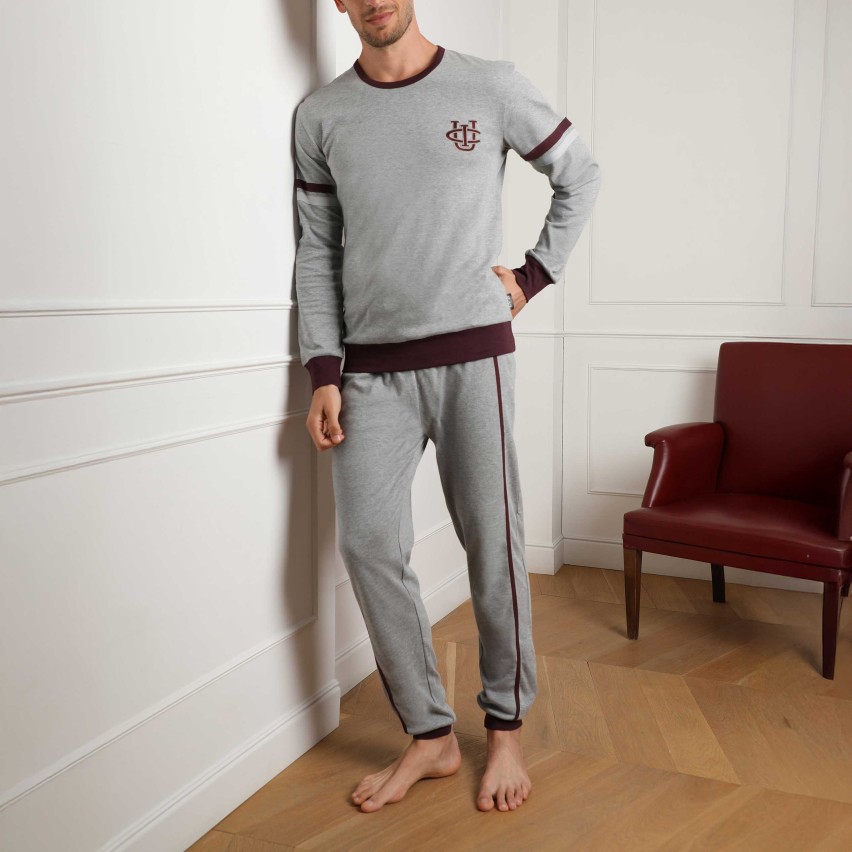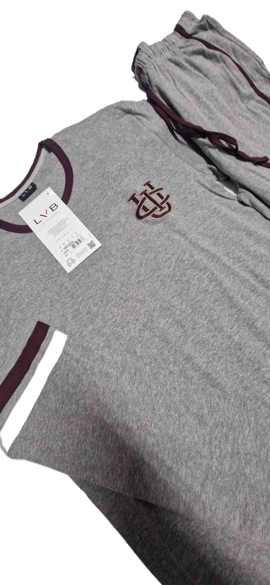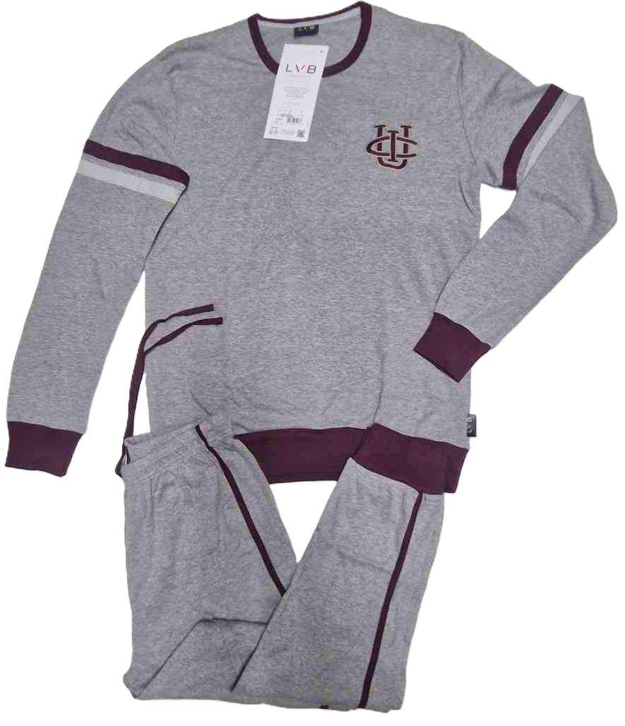 Bellissimo pigiama da uomo della linea Lovable, realizzato in morbido caldo cotone 100%, al tatto risulta un bel tessuto compatto morbido e confortevole, una vero e proprio completo per stare in casa. Realizzato in due colori , grigio e blu con scollatura a giro gola , pantalone realizzato con polsini alle caviglie e bande laterali, sulla cinta è stata realizzata una comoda coulisse come una vera e propria tuta. Adatto per chi cerca un pigiama giovane e di tendenza ma con la massima qualità.