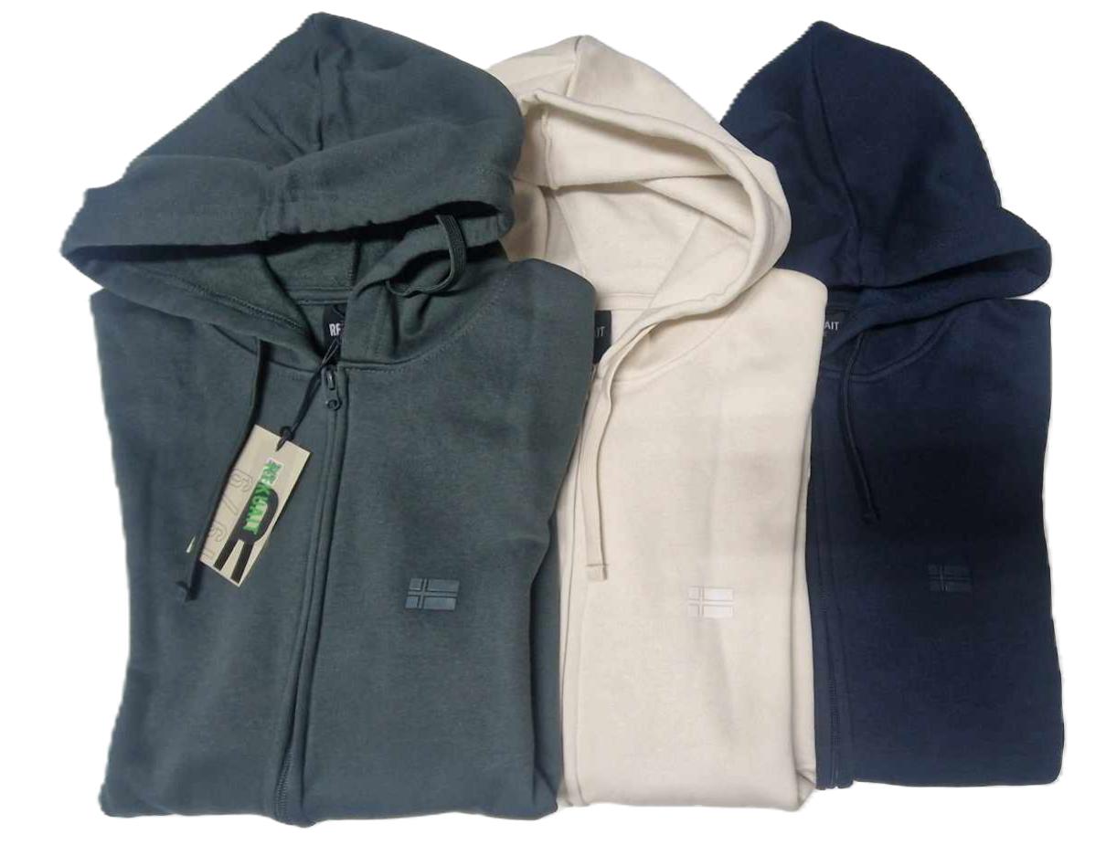 Rekuait propone una felpa molto fluida e sobria. modello full zip con cappuccio e tasche a marsupio. Adatta per chi cerca una felpa felpata all’interno in morbido cotone ma allo stesso tempo non goffa e ingombrante dallo stile asciutto e pulito. Disponibile in tre colori. Composizione 50% cotone 50% poliestere.