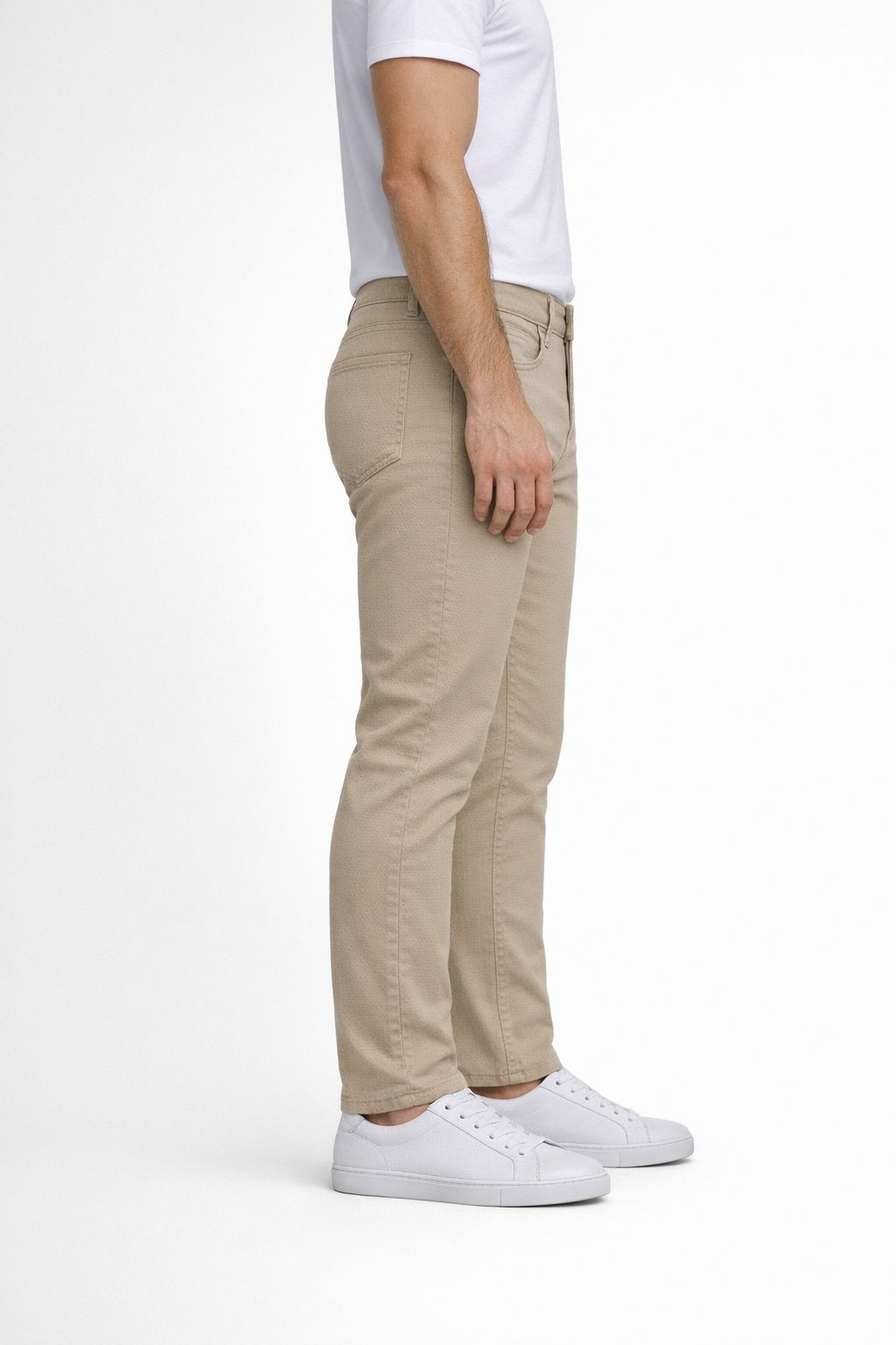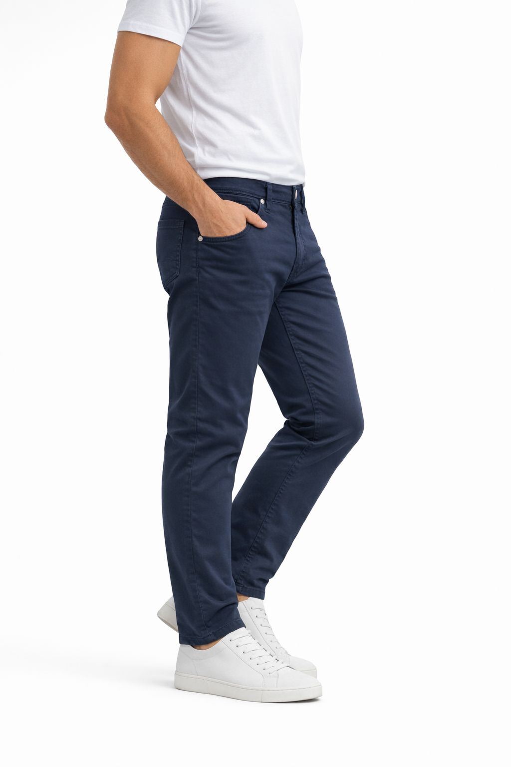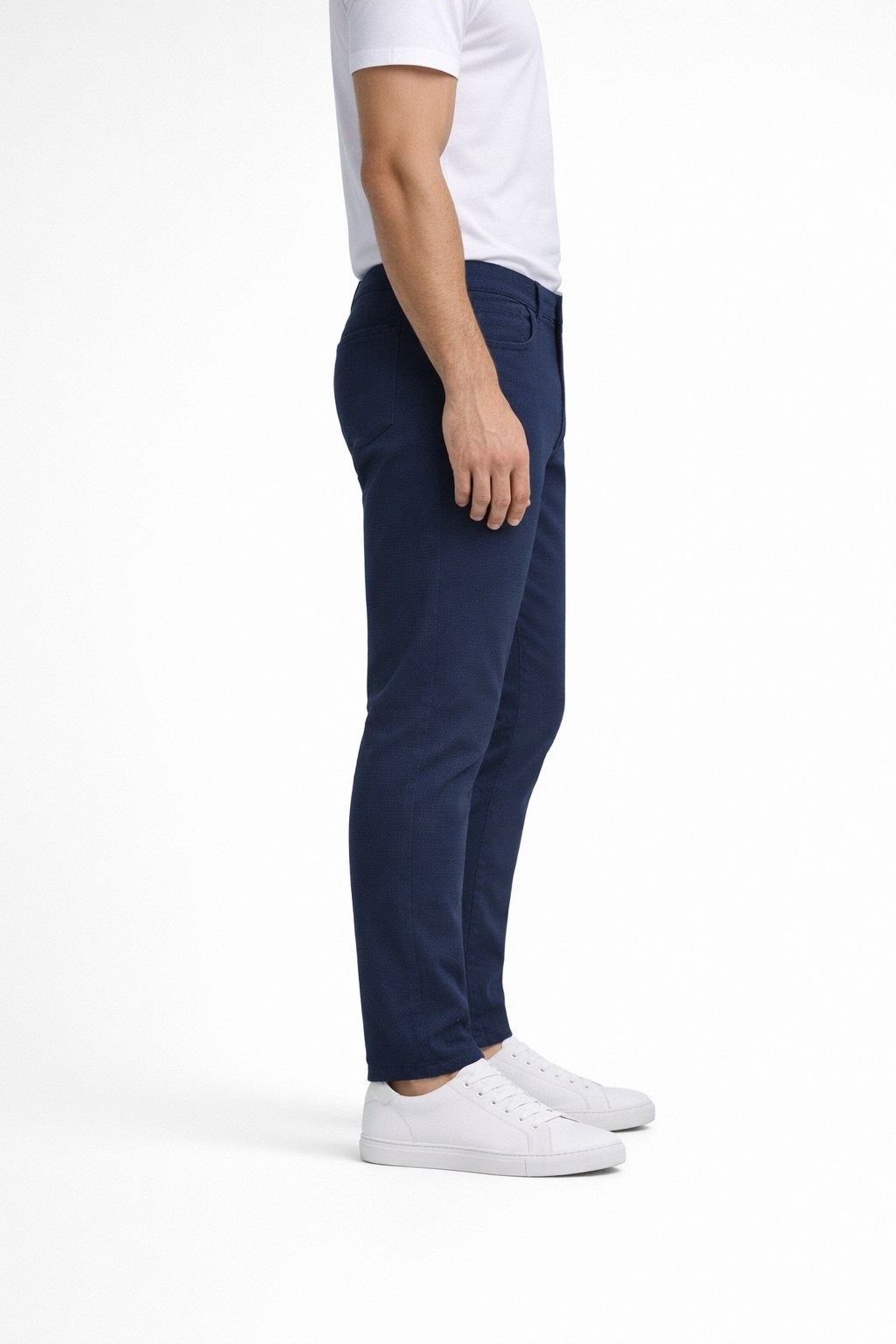 Pantalone uomo, modello 5 tasche, vestibilità gamba Slim, vita comoda. Composizione 97% cotone 3% elastan. Molto bella la lavorazione del cotone a Nido D’ape. Questo è un pantalone adatto ad una stagione primaverile e soprattutto in estate, la finezza del cotone lo rende fresco e leggero. La gamba risulta asciutta ma non eccessiva, la vestibilità del cavallo è alta e comoda.