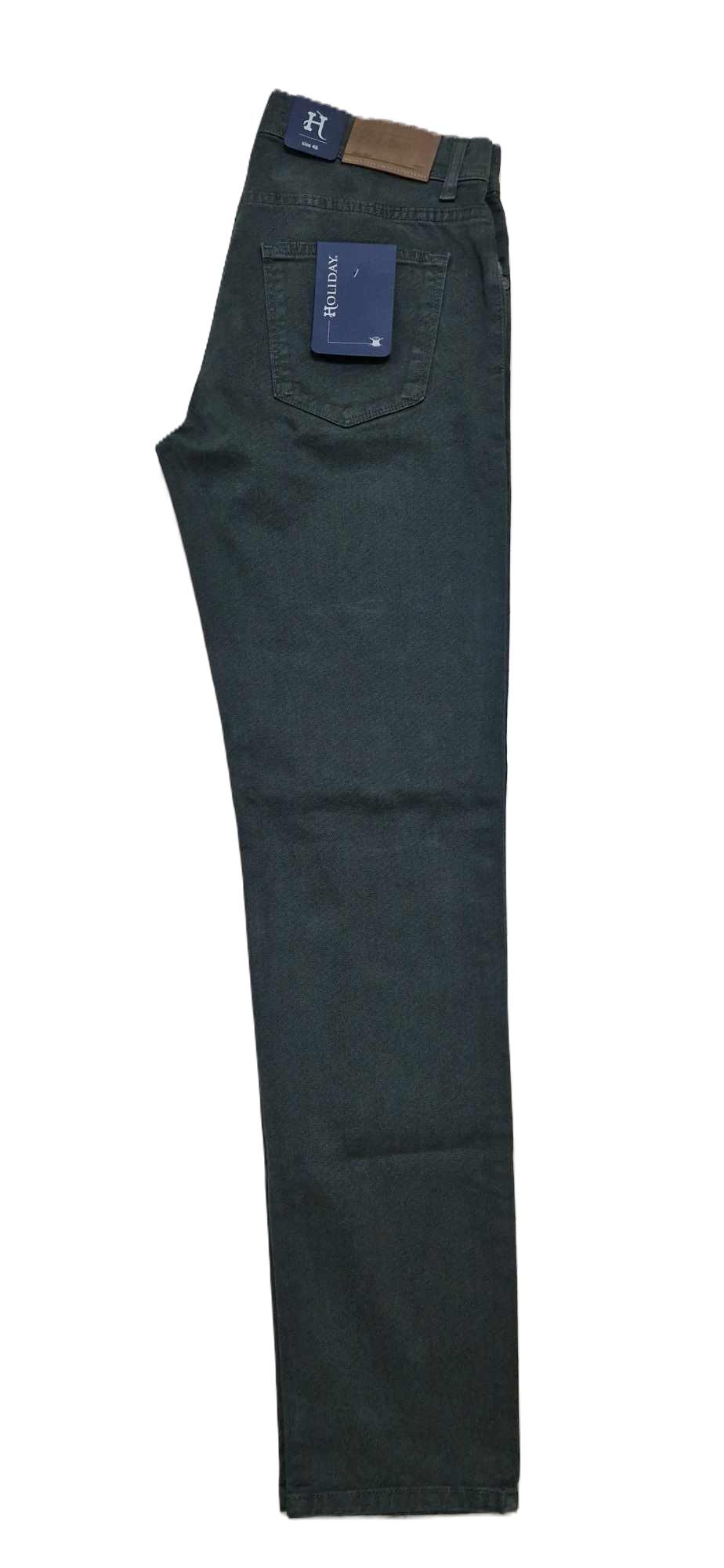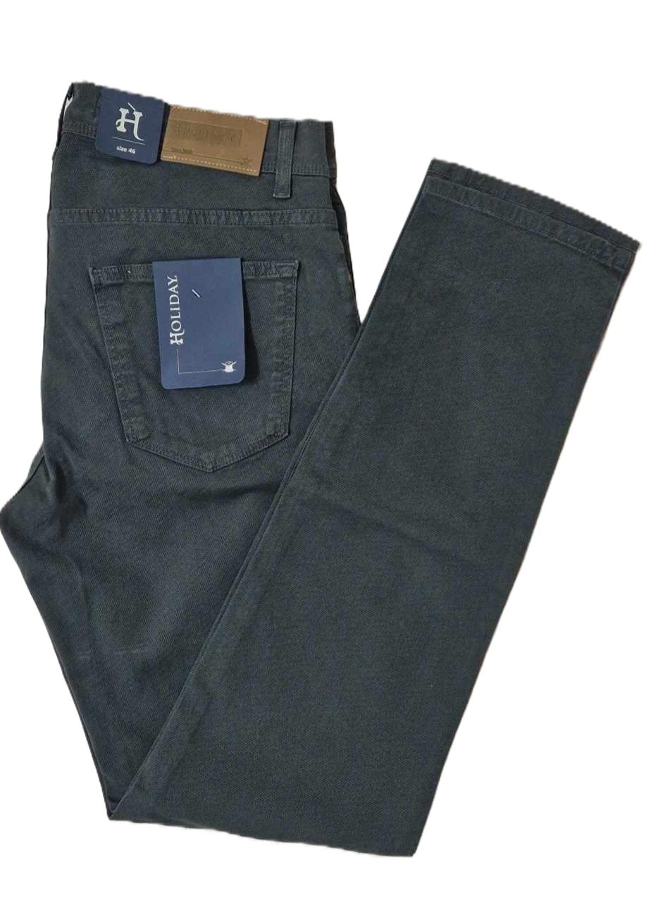 Bellissimo pantalone !! Stoccolma, brand Holiday , morbido fustagno lavorato in microfantasia disponibile in tre colori , verde scuro, blu denim, grigio . Modello cinque tasche ,alto in vita ,molto comodo con gamba a scendere leggermente Slim. Materiali: 87% cotone .3% elastan . Prodotto in Italia.