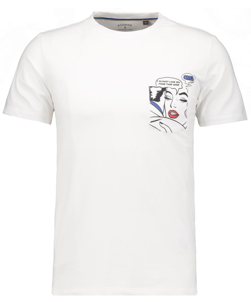 La stampa a fumetti di questa T-shirt si ispira alla lunga tradizione del fumetto americano. Questi sono caratterizzati dal loro linguaggio visivo e stile narrativo unici, mantenendo vivo il fascino dei fumetti classici. L’approccio minimalista della stampa sul taschino sul petto conferisce alla nuova T-shirt RAGMAN un tocco divertente e moderno e combina il meglio di entrambi i mondi: il design tradizionale dei fumetti e la moda contemporanea.Articolo:368781 Materiale:95% Cotone 5% Elastan